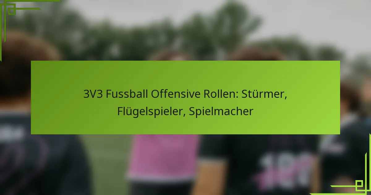 Im 3v3-Fussball sind die offensiven Rollen des Stürmers, Flügelspielers und Spielmachers entscheidend für die Schaffung von Tormöglichkeiten und den Erfolg des Teams. Jede Position hat einzigartige Verantwortlichkeiten, die spezifische Fähigkeiten und effektive Kommunikation erfordern, um defensive Schwächen auszunutzen und strategische Abstände auf dem Feld aufrechtzuerhalten.